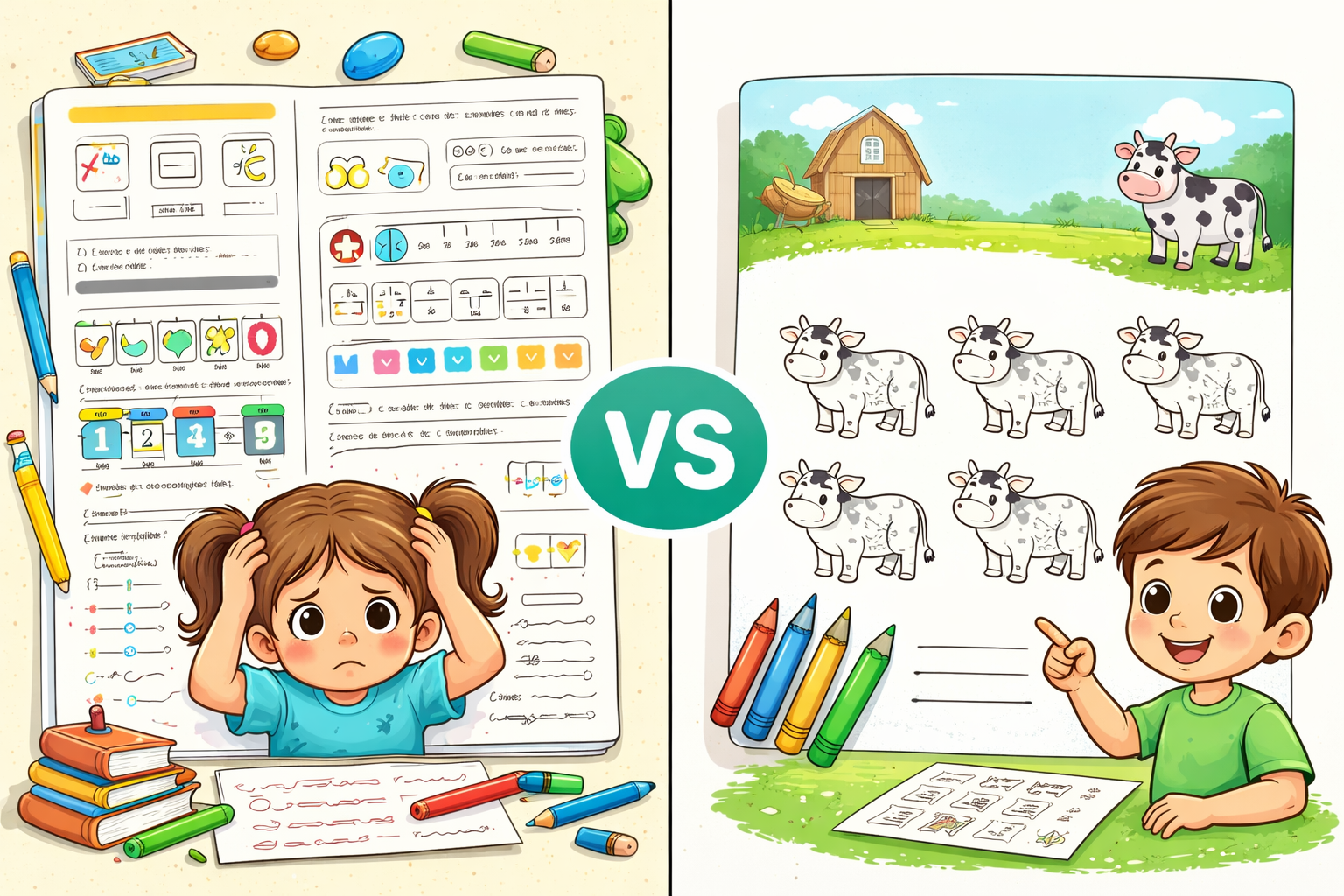 Îi dăm pagini pline, aglomerate, cu prea multe cerințe și prea puțin sens. Apoi ne mirăm că “nu se concentrează”.